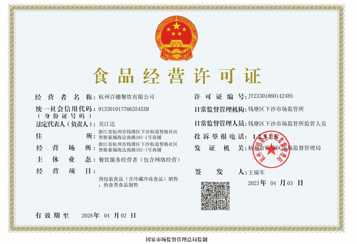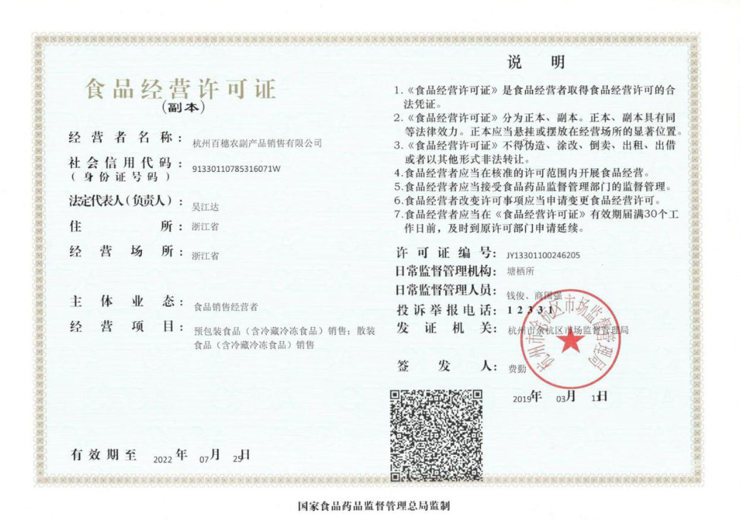 杭州百穗是集農場種植、農產品配送、食品加工、餐飲服務及社區老年食堂為一體的食品安全可追溯源的市級農業龍頭企業,企業擁有杭州百穗農產品種養殖場、百穗農副產品銷售有限公司、百穗食品有限公司、百穗餐飲有限公司,以及由法人控股的杭州學生營養午餐中心(集體配送用餐單位)。